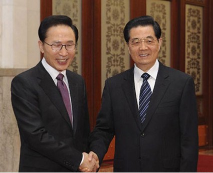 主席胡锦涛同韩国总统李明博会谈